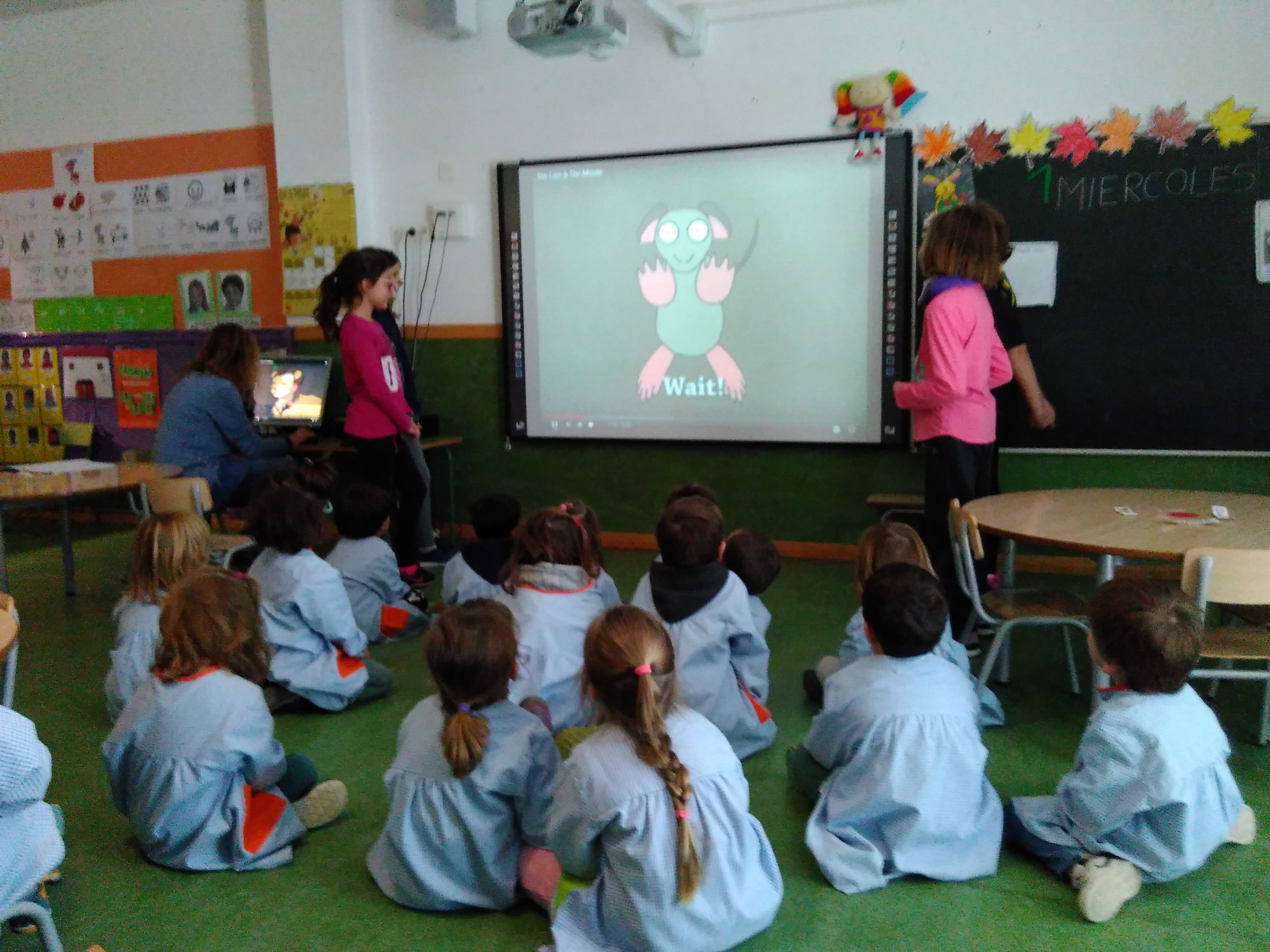 Algunos alumnos de cuarto de Primaria, dentro de la Sección Tell me a tale ( cuénteme un cuento), han ido maquillados a contar a los alumnos de 3 años de Infantil, el cuento en » The Lion and the mouse». Tanto a los lectores como a la oyentes, les gusta la actividad y han pasado un buen rato y se han puesto en práctica el aprendizaje entre iguales.