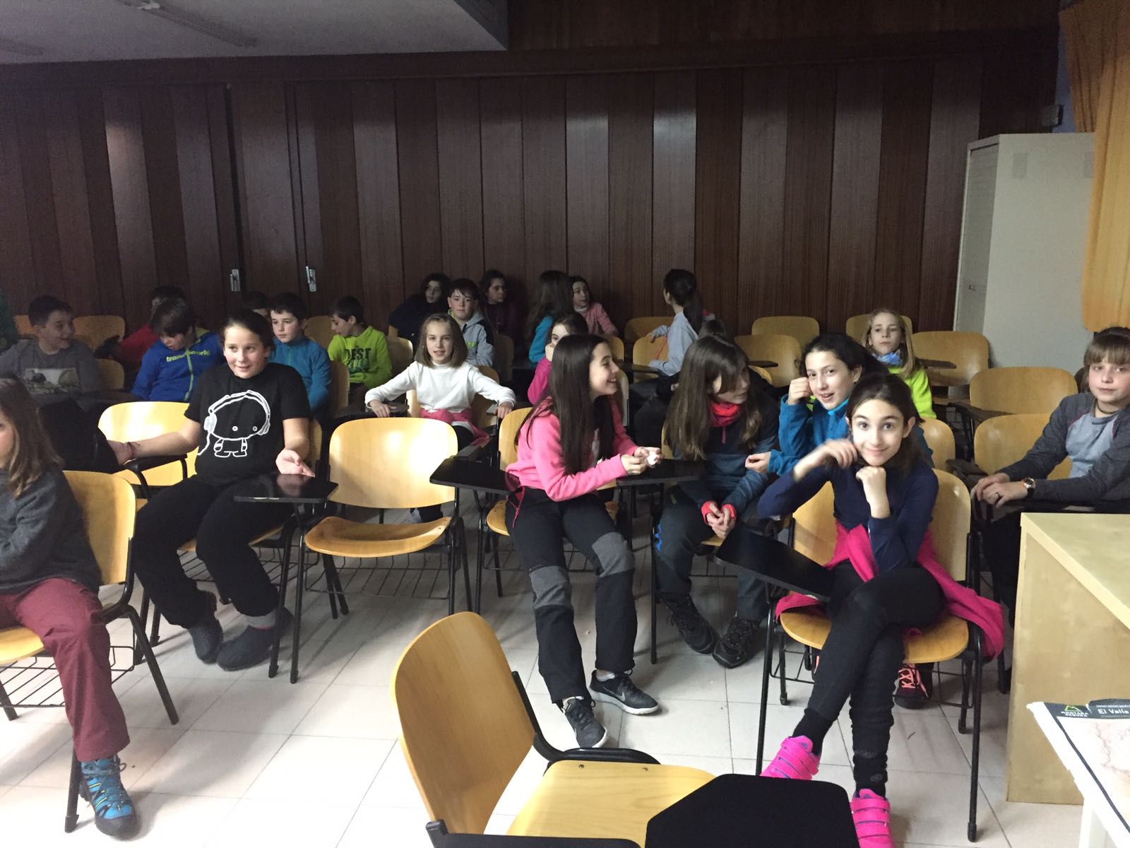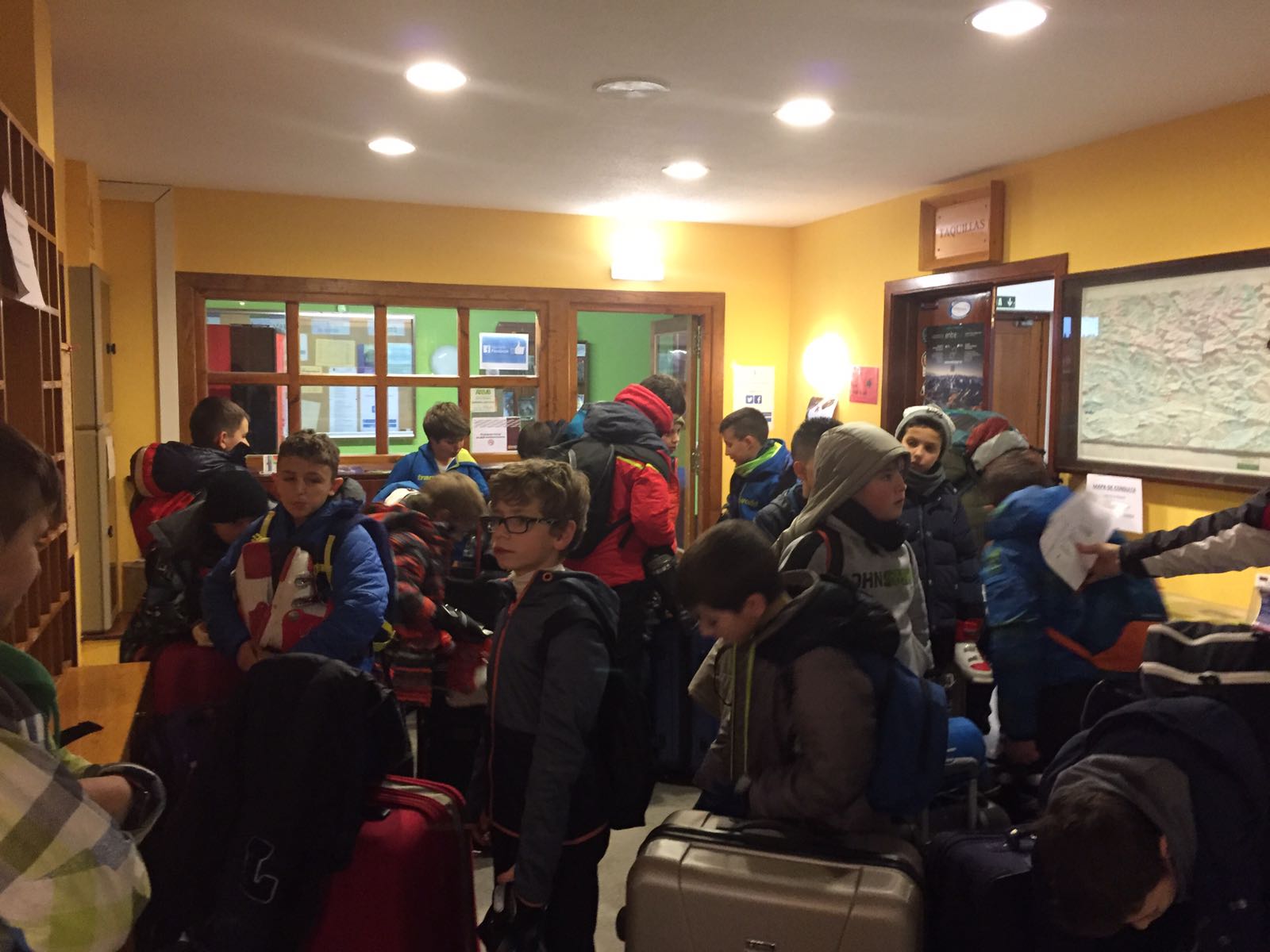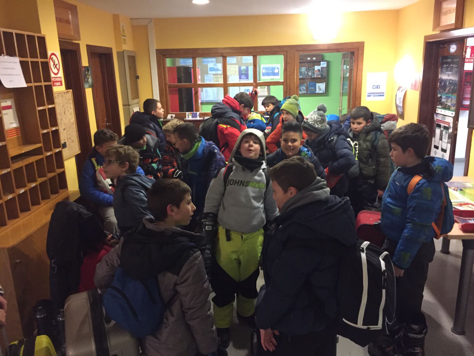 Nuestros alumnos de 4º y 5º de Primaria han llegado a las 5 de la tarde a la estación de Cerler, donde han alquilado los equipos con los que esquiarán durante toda la semana. Después de merendar en las pistas, han bajado a la Escuela de Montaña de Benasque, donde van a estar alojados. Una vez que se han acomodado en las habitaciones, han conocido a sus monitores y ahora mismo se encuentran a punto de comenzar la cena. A partir de mañana iremos actualizando la información a lo largo del día a través de Twitter y por la noche resumen en la web.