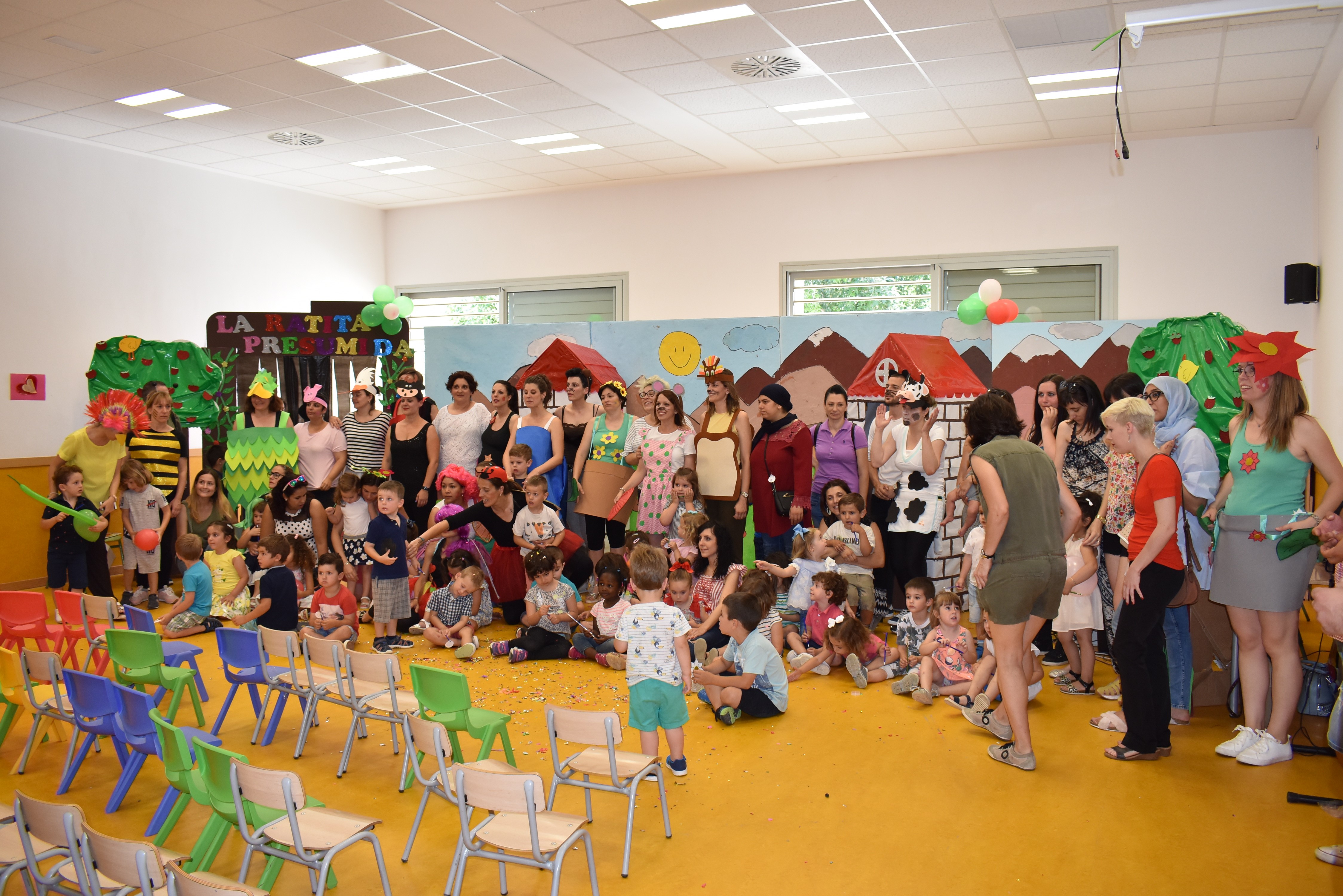 El pasado miércoles cerramos el curso 2017/18 con una mañana especial y llena de emoción. Los padres de nuestros alumnos de 1º de Infantil nos sorprendieron con una versión mejorada del clásico “La ratita presumida”. Todos los alumnos de Infantil disfrutaron muchísimo de la actuación, especialmente los de tres años, a los que les encantó ver a sus papis en escena. Después almuerzo preparado por ellos también. Nuestro agradecimiento y felicitación a todos ellos, que han estado preparando y ensayando durante varias semanas. Ojalá sea el comienzo de una tradición que se repita año tras año.¡Mil gracias artistas!