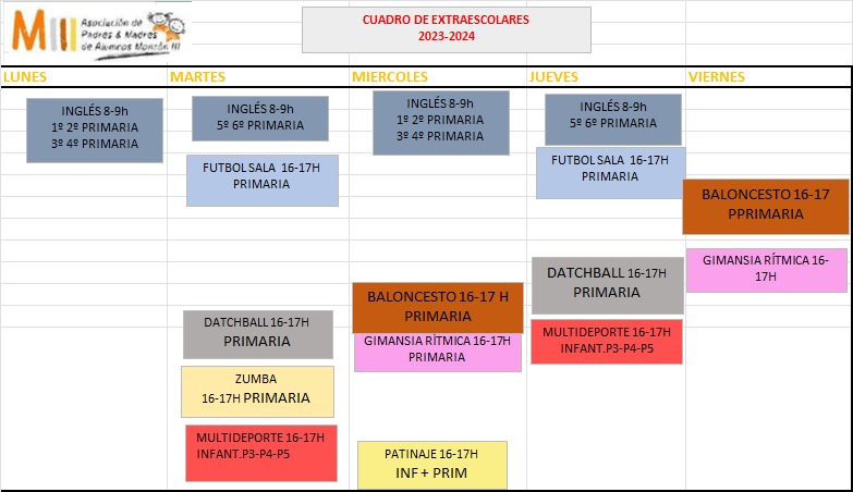Actividades extraescolares 23-24 monzon3octubre 2, 2023Uncategorized Navegación de entradas AnteriorSiguiente Comparte esto: Haz clic para compartir en X (Se abre en una ventana nueva) X Haz clic para compartir en Facebook (Se abre en una ventana nueva) Facebook Me gusta Cargando...